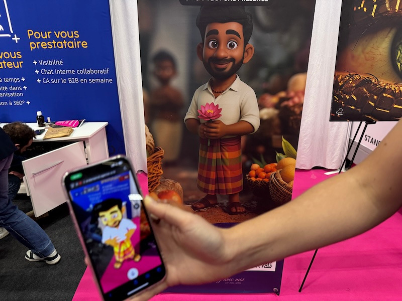 Je suis abordé par une jeune femme armée de son smartphone. Il s’agit de Martha. Je lis difficilement l’offre sur le stand mais Martha va me convaincre de rester en une petite minute. Face à moi, il y a des panneaux, l’image d’un serpent. Elle vise le QR Code et le serpent prend vie, son regard me suit. Ok, réalité augmentée. Mais avec une webapp et ça change tout à l’usage. Puis elle vise un autre QR code et là, un personnage apparaît, il est avec moi. Je le vois, nous faisons quelques pas ensemble. Il parle mais il ne se contente pas de vous raconter une histoire. Il discute, il répond à vos questions, il vous fait la conversation, il sourit et il est plutôt aimable, sympa, agréable à regarder, rassurant. J’imagine immédiatement tout ce que l’on peut inventer, tout ce que l’on peut imaginer avec un tel outil au service de nos chers publics. Et j’aimerais vous faire partager mon enthousiasme.