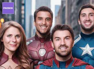 Mais un événement tel que celui-ci, c’est aussi une soirée. Et la soirée tient une place importante, c’est un véritable temps fort, comme on dit. Le photocall est une animation incontournable. Elle amuse, elle laisse des souvenirs, elle se pratique seule, mais surtout en groupe. Alors je pense à FRIZBOX (qui va bientôt changer de nom me dit le chef de projet que j’ai en ligne). Je sais que FRIZBOX est spécialisée dans l’IA. Elle peut transformer les poseurs en tout ce que vous voulez, et les transposer dans les décors qu’ils souhaitent. Et c’est exactement ce qu’il me faut pour les plonger dans leur univers, l’univers de LEUR soirée.