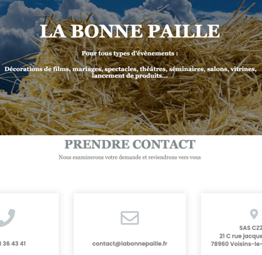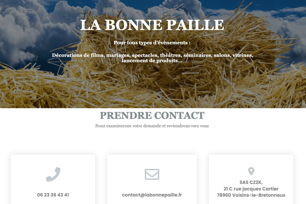 La première chose que je me suis demandé, bien évidemment, c’est que puis-je faire avec des bottes de paille ? Je fais de l’événementiel mais, ça, Christophe le savait très bien en m’envoyant le message et d’ailleurs, le message était sans équivoque : « décoration de films, mariages, spectacles, théâtres, séminaires, salons, vitrines, lancement de produit... PRENDRE CONTACT...