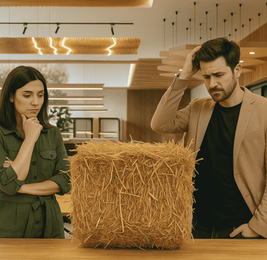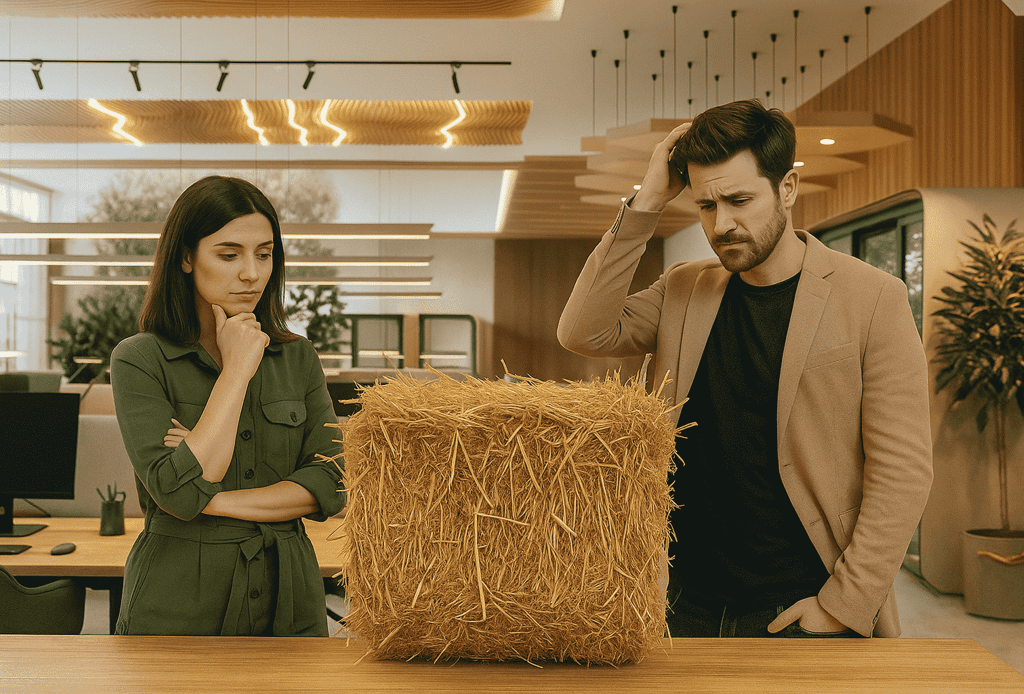 L’entreprise dont je veux vous parler s’appelle « La Bonne Paille ». Vague jeu de mot avec La Bonne Paye ? Je ne le sais pas encore au moment où j’écris ces lignes parce que je ne l’ai pas demandé à Christophe Geoffroy, le boss de l’entreprise. Christophe vend une prestation étonnante, que je qualifierais d’insolite : des bottes de paille, comme la raison sociale l’indique sans aucune ambigüité.