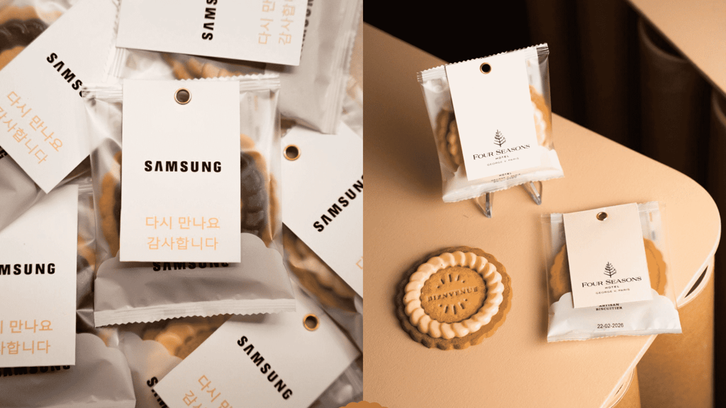 Et puis je n’ai ressenti à aucun moment de sentiment d’écœurement propre aux mauvaises sucreries. Rien que du plaisir pour un petit moment de bonheur. Pour le palais mais également pour les yeux avec ces lignes sobres et sa taille généreuse, son chocolat qui invite à la dégustation et l’élégance du packaging. 4 biscuits, 4 parfums et ce que vous voulez inscrire au centre du biscuit : une attention particulière ou une marque. Tout est possible. Vous pouvez également riveter une carte au sachet individuel ou personnaliser la boîte si vous disposez d’un budget plus conséquent. Une bonne idée de cadeau de fin d’année...
