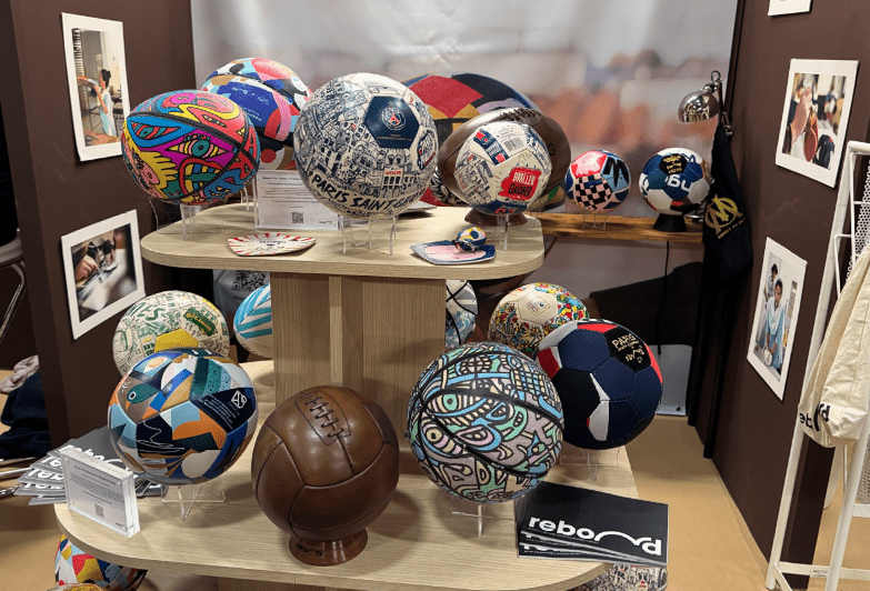 Plus loin, je m’arrête et je prends une photo, puis deux. Les deux personnes sur le stand sont en grande conversation, je prends un catalogue pour patienter et je le dévore en quelques minutes. Il y a un monde fou. C’est mérité pour Rebond, cette petite entreprise multi récompensée qui fabrique ses ballons en France et en Inde.