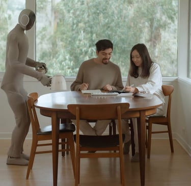 Blue Frog nous le promet : Buddy serait la solution idéale pour accueillir les invités d’un événement, sur les plans relationnels et expérientiels. Très bien. Néo, le robot de 1X, une entreprise norvégienne, pourrait réaliser de nombreuses tâches dont le service et le ménage, le vestiaire et la sécurité (non, pas la sécurité, en fait, parce qu’avec sa tête de mannequin pour chaussettes et ses trente kilos, Néo n’est pas crédible du tout, en fait) et bien d’autre choses encore... Néo est un bijou de technologie que l’on essaye de nous vendre (déjà ?) à vingt mille dollars pièce. Mais quel est le nombre de prestations que Néo doit effectuer pour rembourser cet investissement ? Bien entendu, Néo rencontre des problèmes techniques. Les inconnus qui se trouvent au bout des deux grosses caméras qui lui servent d’yeux posent de sérieux problèmes de vie privée dans une utilisation domestique. Mais qu’en est-il s’il s’agit d’un usage purement professionnel ? Quel est le problème ? La déontologie ? L’espionnage ? (Sourire). Oui, les robots humanoïdes rencontrent de gros problèmes. Les machines déraillent parfois. Les avancées sont empiriques. Mais ce n’est qu’une question de temps avant qu’ils n’atteignent le niveau de C3PO. Néo et Buddy ne sont pas les seuls à vouloir s’emparer des marchés, il y a Figure 3, Hoxo et bien d’autres encore...