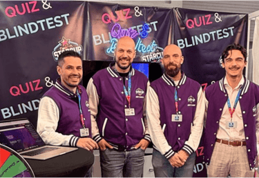 Les premiers à m’écrire furent les 4 mousquetaires sympathiques de Starcup. Ambiance détendues et communication affûtée avec leurs teddies violet et blancs, leur stand bricolé mais bien placé, très attirant, et leur envie communicative de vous faire plaisir. Ce qu’ils font ? Ils proposent des quizz et des blind tests en ligne. Le marché est complètement saturé ? Et alors ? J’ai fait un article, il y a quelques années à propos d’une énième agence d’hôtesses qui s’était fait une place sur son sens du service, sa capacité d’innovation, ses tarifs compétitifs, sa communication... Donnons une chance à Starcup... J’ai testé et c’est d’une simplicité enfantine, comme les autres. Comparer est toujours un acte qui vous fait progresser et qui fait progresser ceux que vous comparez. À méditer.